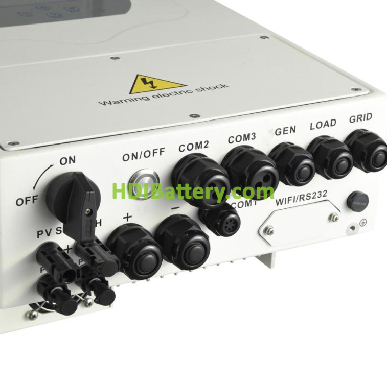 • Funcionalidad Híbrida: Puede funcionar tanto conectado a la red como en modo autónomo (off-grid), gestionando la energía de las baterías, paneles solares y la red eléctrica.