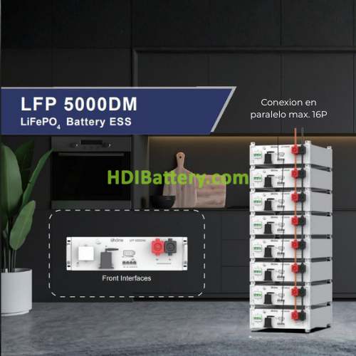 Características de Batería LiFePO4 Uhome LFP 5000DM 51.2V 5.1kWh con BMS y Conexión en Paralelo